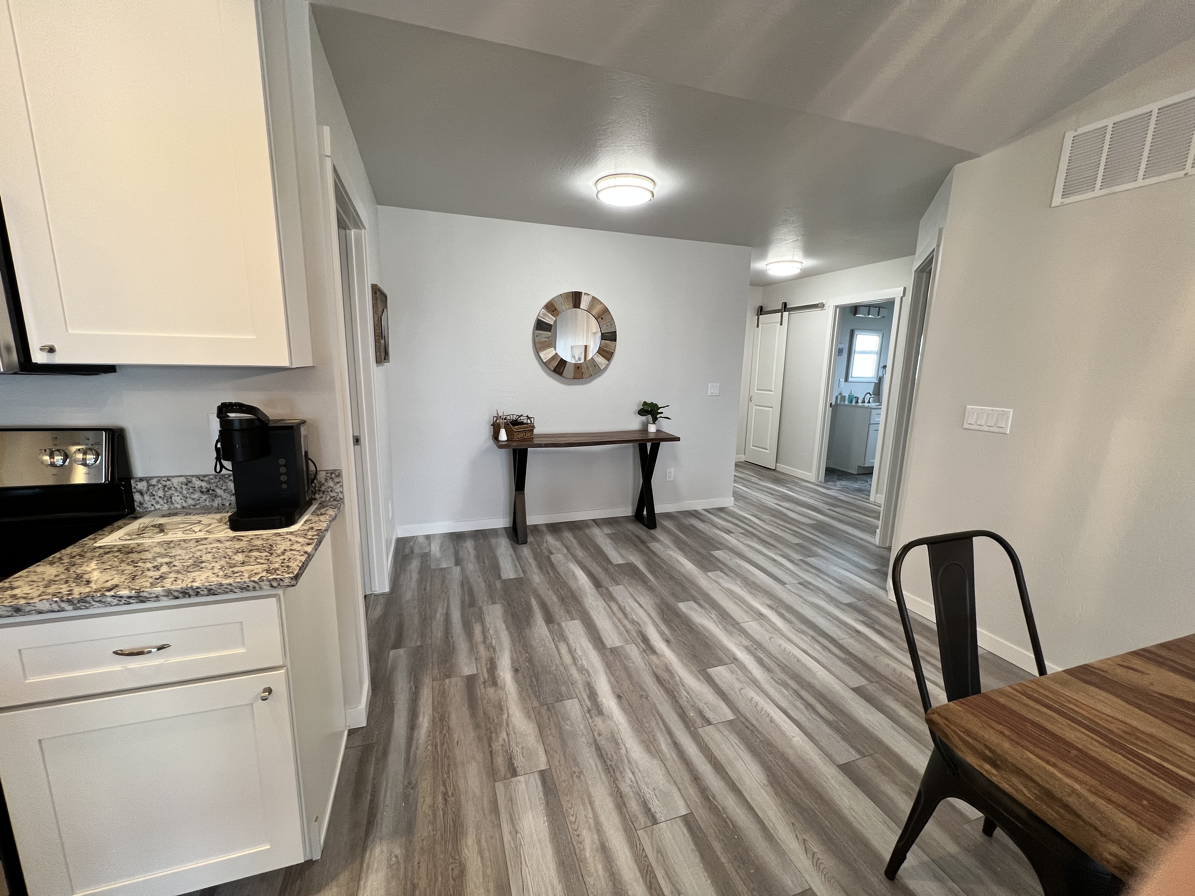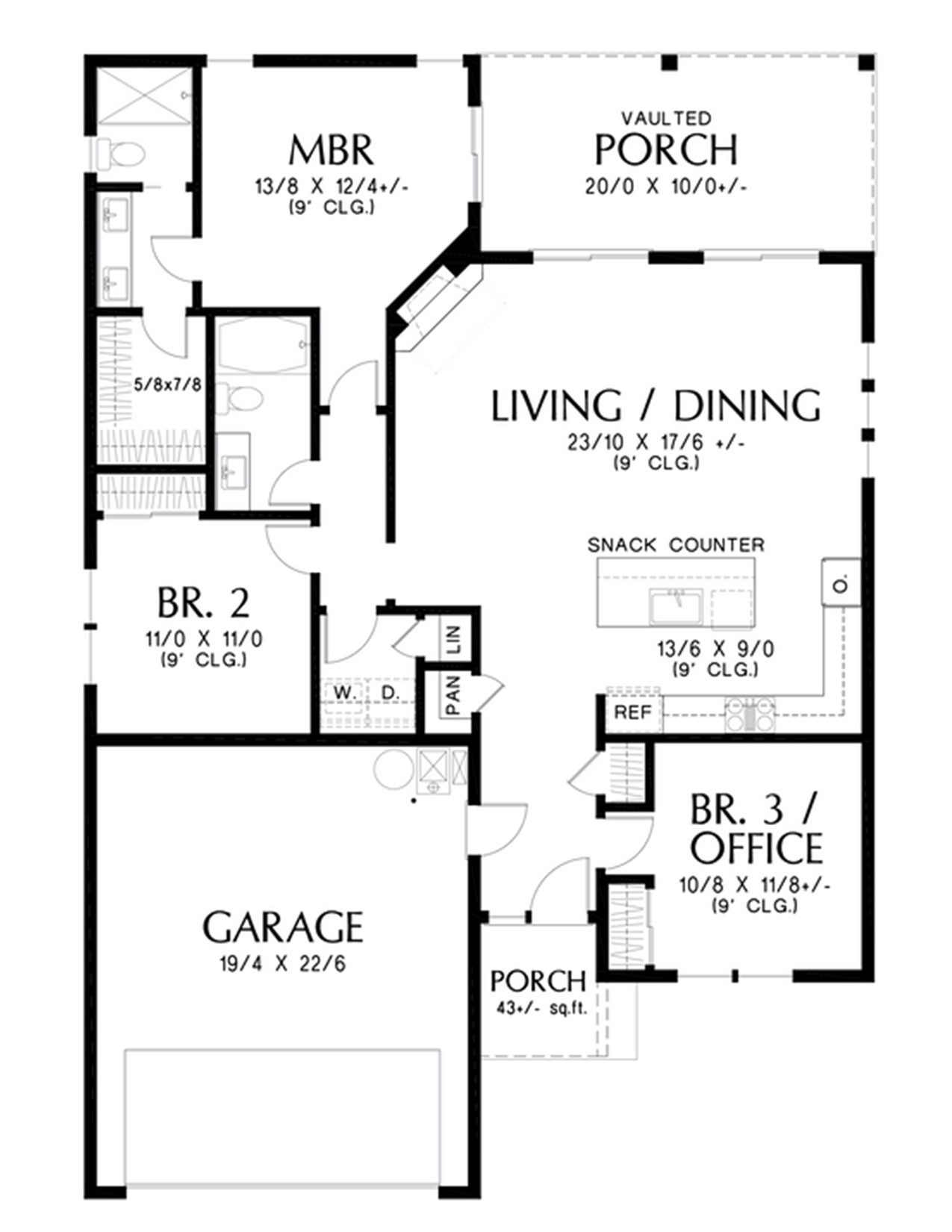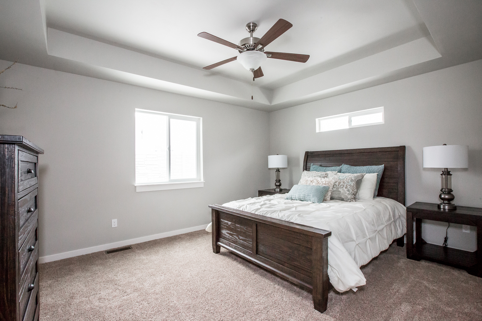 - Vaulted ceiling in living room and a tray ceiling in master bedroom