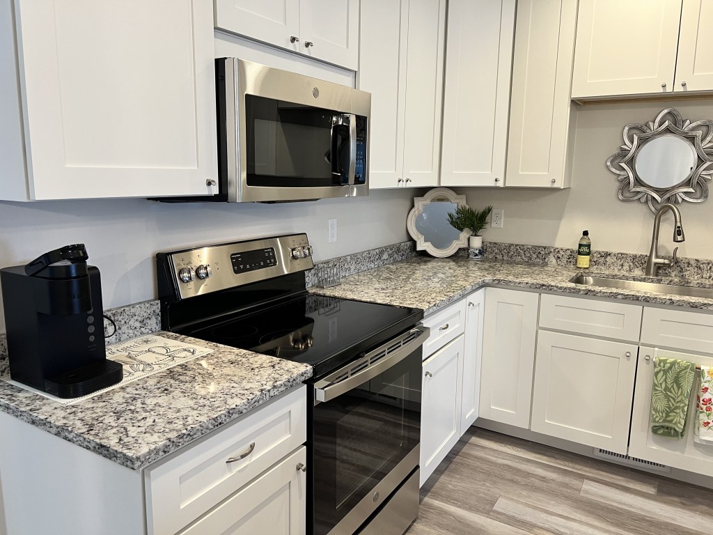 - Solid surface countertops in kitchen